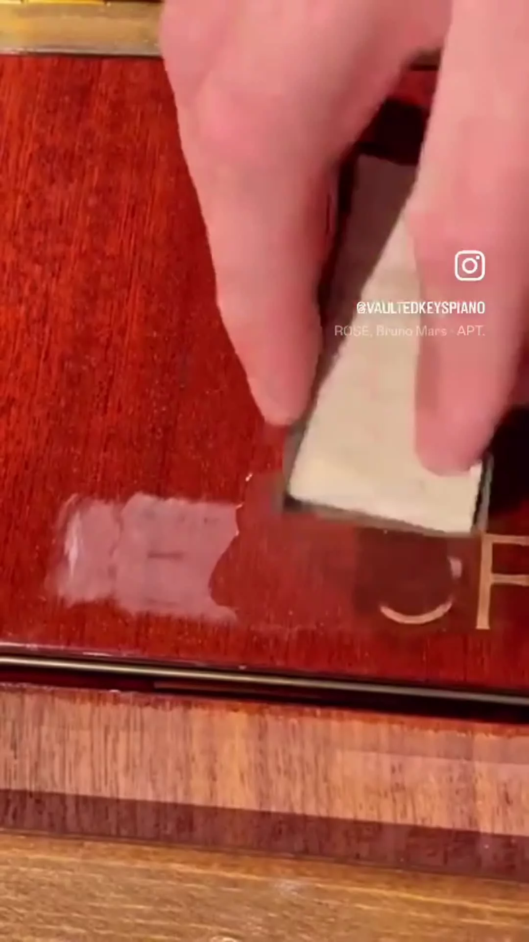 A glimpse of a 1990s Kawai baby grand piano refurbishment.